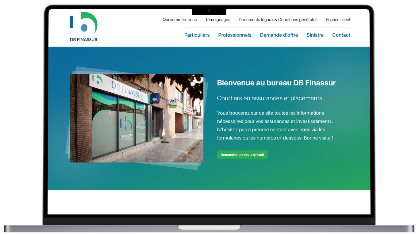 Cette refonte offre à DB Finassur une identité digitale plus professionnelle, plus lisible et parfaitement adaptée aux usages actuels.